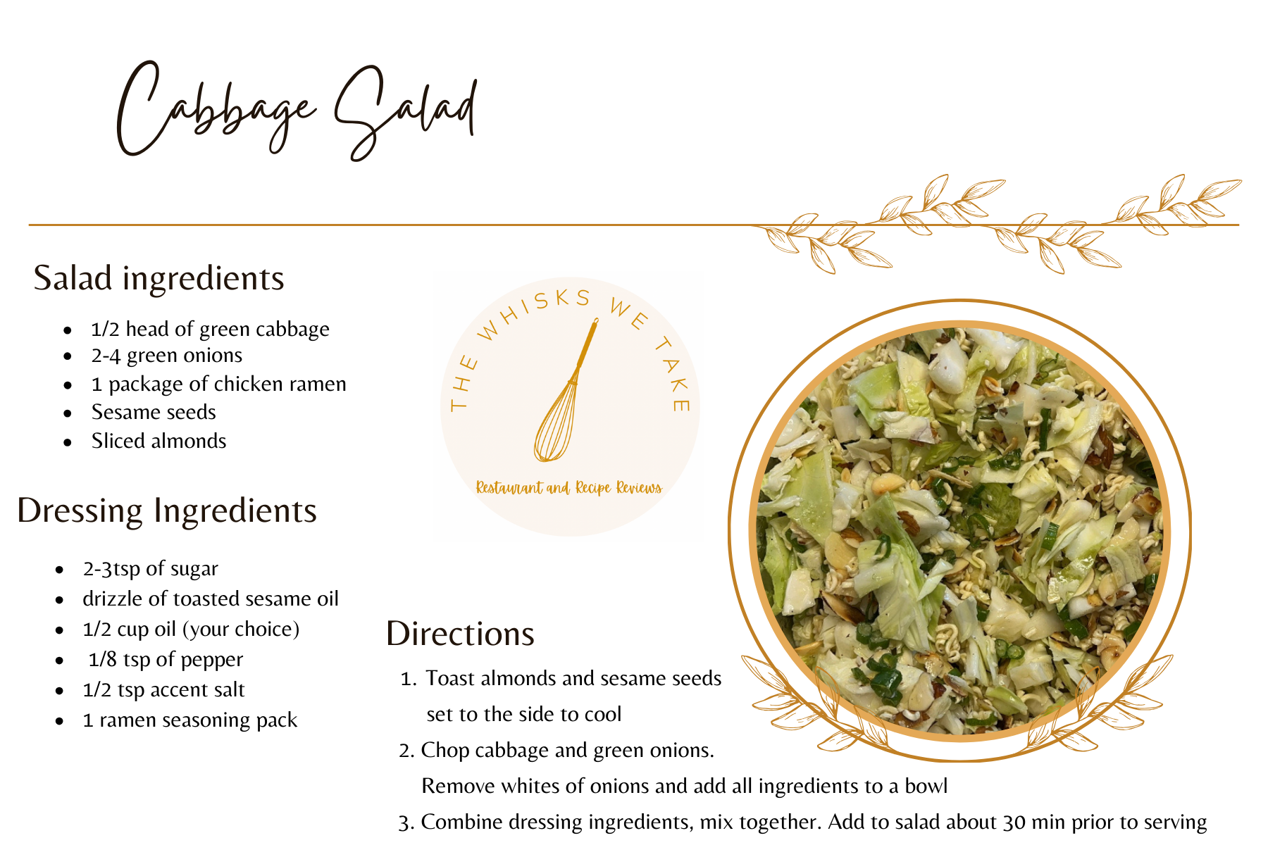 Cabbage Salad with Ramen Noodle ingredients: